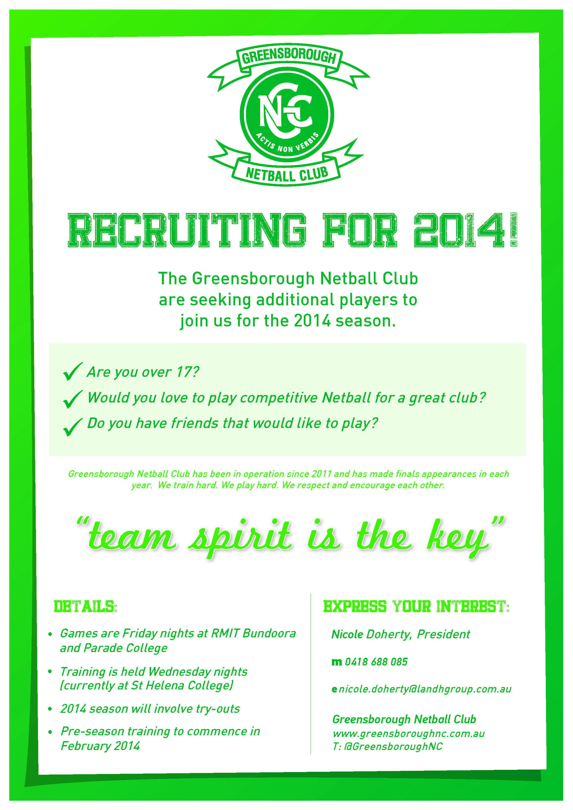 Players required for season 2014 September 24, 2013 / GNC Go backYour message has been sent Name(required) Warning Mobile Warning Email(required) Warning Position played Shooter Midcourt Defender Allrounder Warning Comment(required) Warning Warning. Submit Δ Share this: Click to share on X (Opens in new window) X Click to share on Facebook (Opens in new window) Facebook Like Loading... Related